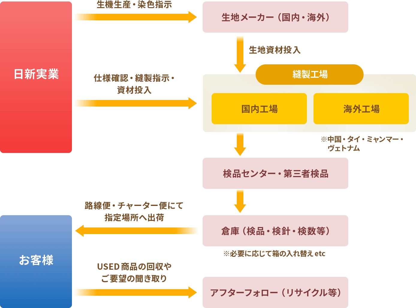 • 日本をはじめ、中国・タイ・ミャンマー・ベトナムなど各拠点の協力工場と直接取引。